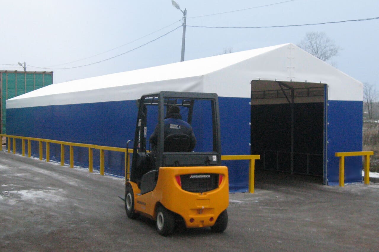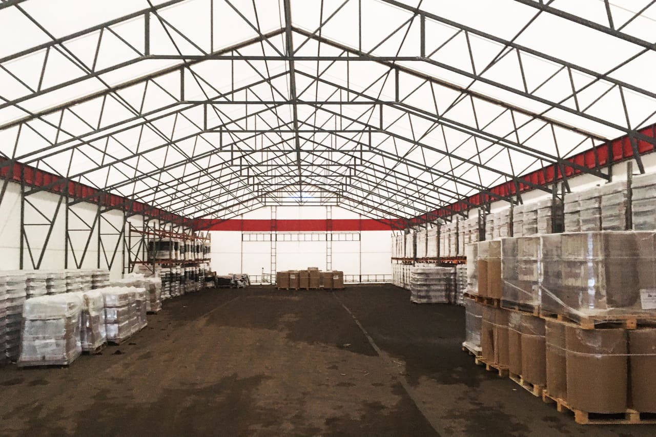 A tent hangar can be used to create a fully-fledged logistics center without lengthy construction or significant capital investment. It is suitable for both temporary and permanent use, providing all necessary functions: receiving, storing, sorting, and shipping goods.