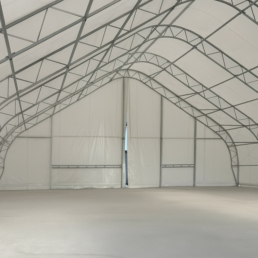 Having our own production of hangar awnings allows us to ensure full quality control at every stage - from the selection of high-strength PVC materials with UV and fire protection to individual adaptation of the design to any hangar configuration.