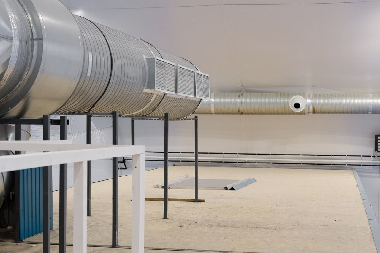 The ventilation system is tailored to each specific project. Both natural and mechanical options are available depending on the size of the hangar and the requirements.
